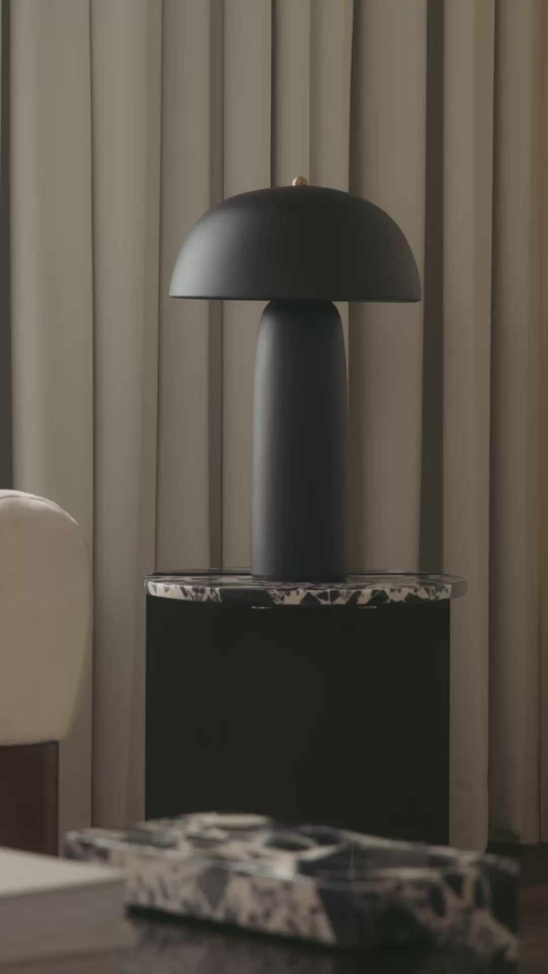 Introducing the Adora Table Lamp—a graceful design inspired by mushroom curves. Its ceramic base, paired with brass accents, exudes natural luxury. The matte wax finish adds a refined touch. Illuminate your space with quiet elegance.