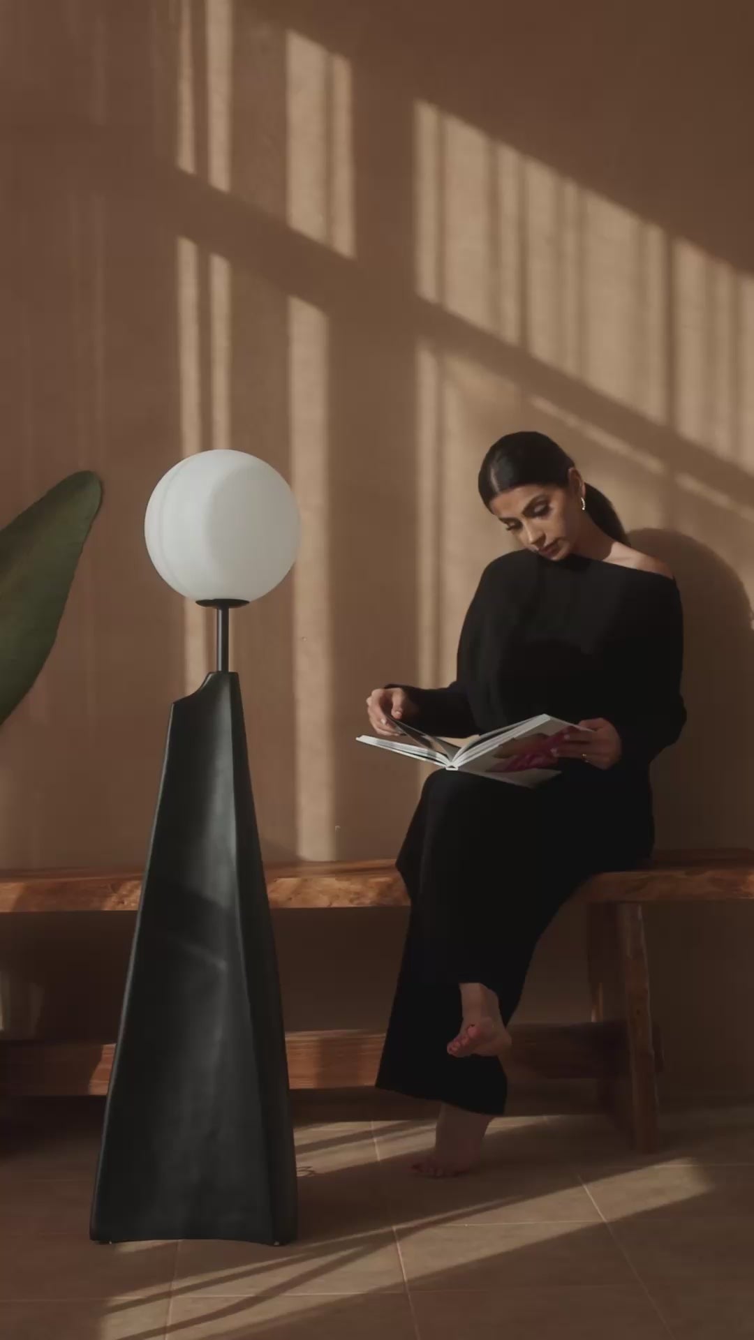 Inspired by the full moon, this floor lamp combines a sleek resin base with a radiant blown glass top. Its opaline glass diffuser emits a warm, soft light, making it an elegant focal point for any room. A perfect blend of style and innovation, adding a hint of lunar magic to your home.