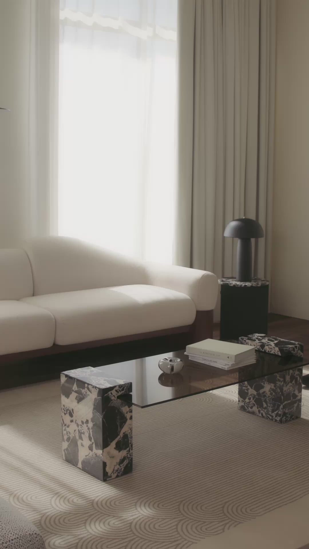 The Harmony side table series exudes elegance with its minimal, architectural design. Crafted from a marble piece with natural tones of a deep black with characteristic of white veining add depth to any space.