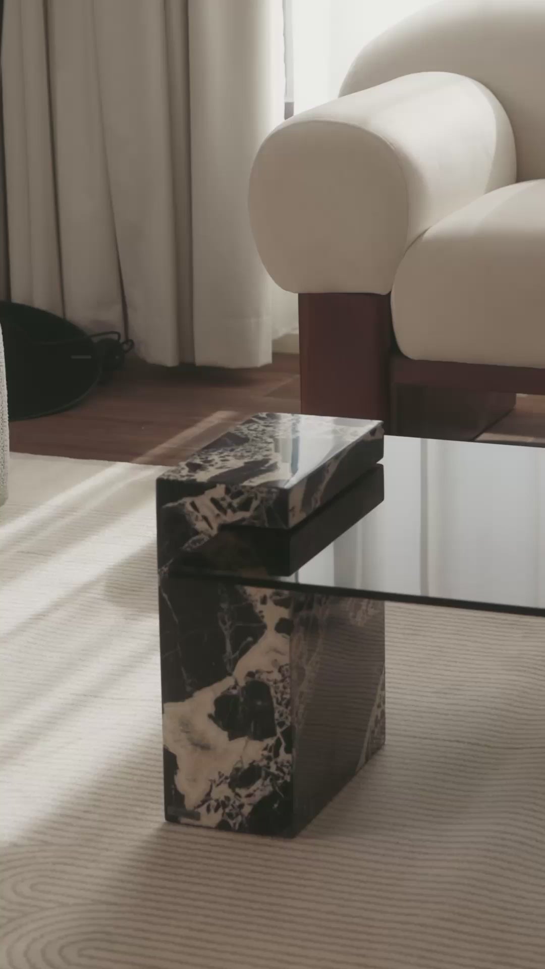 The combination of luxurious marble and sophisticated glass creates a modern and refined design, making it a stunning addition to any living space.