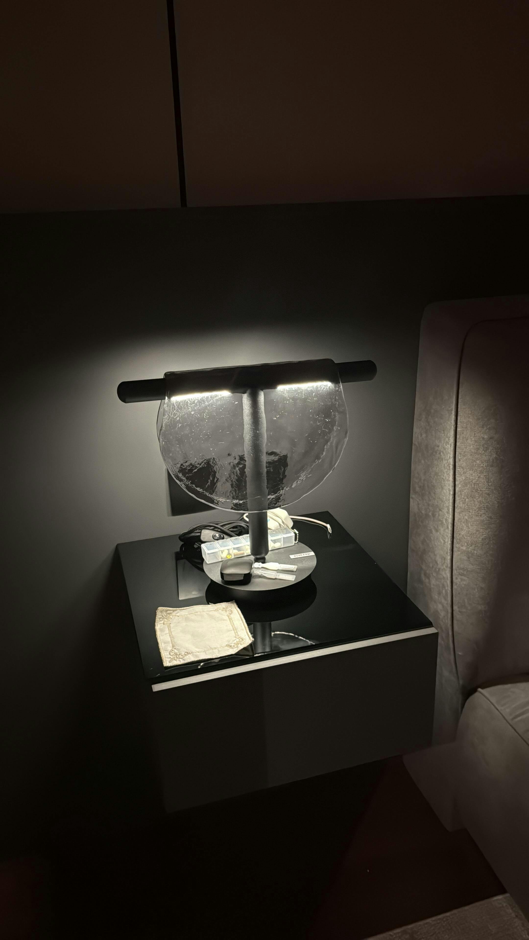 The Otto table lamp, with its black matte metal body and smoked glass, is a versatile choice suitable for both modern and classic spaces. Its stylish design and elegant materials make it a perfect addition to bedroom side tables or upscale office settings, adding a touch of sophistication.