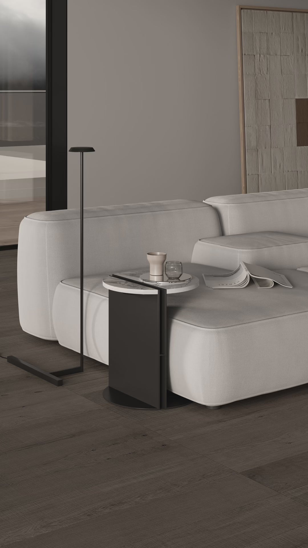 Introducing the Tala floor lamp: a modern masterpiece with an elegant "L" shape. Its matte black brushed metal finish exudes sophistication while providing versatile lighting options. It combines style and functionality seamlessly. Illuminate your space with timeless contemporary design.